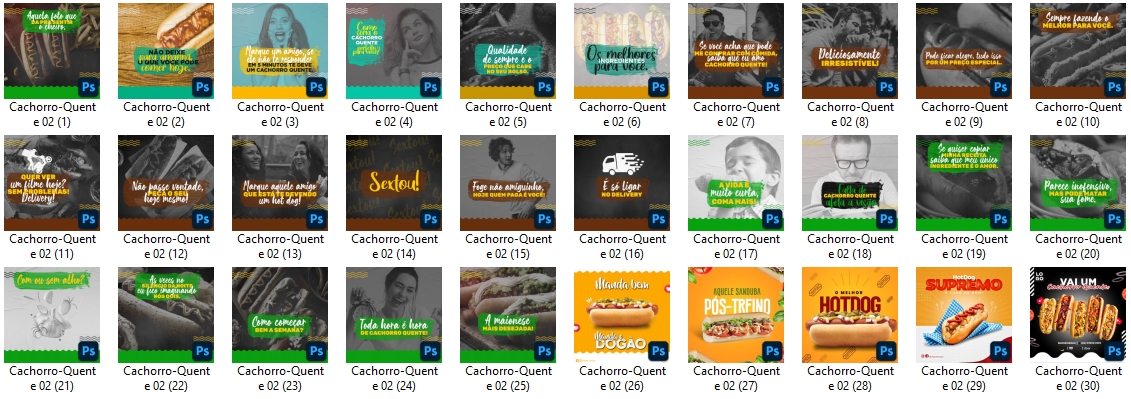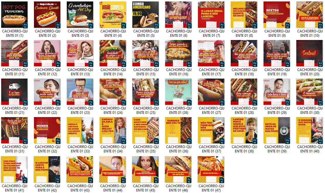 Arts prontas e editáveis para cachorro quente (mas você pode usar para qualquer outro nicho e categoria, basta editar)