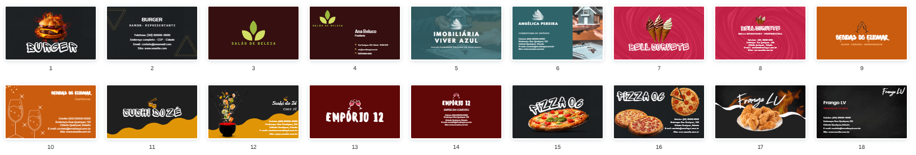 Artes de cartões de visita para Canva modo link direto, abre dentro do Canva