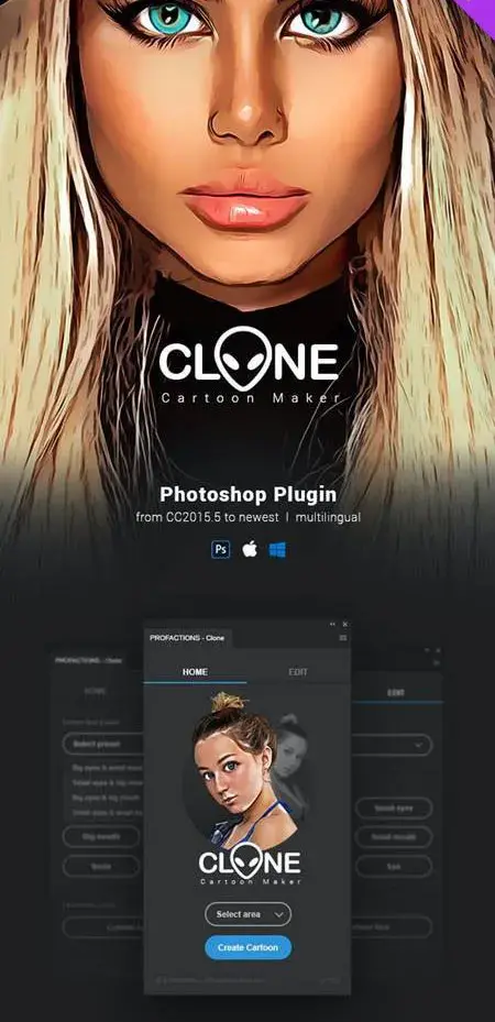 Plug-in inteligente do Photoshop para criar desenhos animados incríveis a partir de qualquer foto em um minuto. Este plug-in lhe dará a oportunidade de ser um artista digital profissional e retratos de desenhos animados e caricaturas de desenhos animados sem Photoshop ou habilidades especiais de desenho. Junte-se e divirta-se!