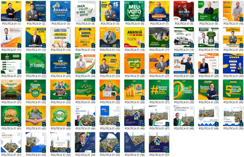Arts prontas e editáveis para politica (mas você pode usar para qualquer outro nicho e categoria, basta editar) POLITICA 01 – 57 TEMPLATES PSD 6.48 GB em Arquivos POLITICA 02 – 106 TEMPLATES PSD 8.76 GB em Arquivos POLITICA 03 – 48 TEMPLATES PSD 2.53 GB em Arquivos POLITICA 04 – 34 TEMPLATES PSD 1.85 […]