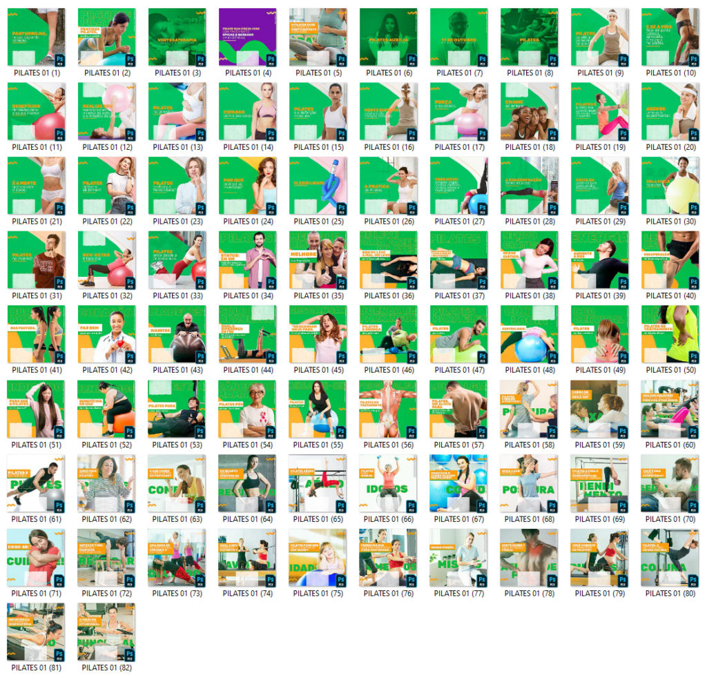 Arts prontas e editáveis para Pilates (mas você pode usar para qualquer outro nicho e categoria, basta editar) PILATES 01 – 82 TEMPLATES PSD 3.58 GB em Arquivos ANTERIOR PRÓXIMO Página Inicial