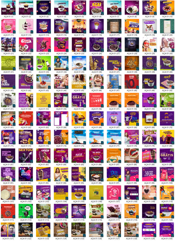 Arts prontas e editáveis de açai (mas você pode usar para qualquer outro nicho e categoria, basta editar) AÇAI 01 – 130 TEMPLATES PSD 2.09 GB em Arquivos AÇAÍ 02 – 130 TEMPLATES PSD 7.77 GB em Arquivos AÇAÍ 03 – 22 TEMPLATES PSD 592 MB em Arquivos ANTERIOR PRÓXIMO Página Inicial