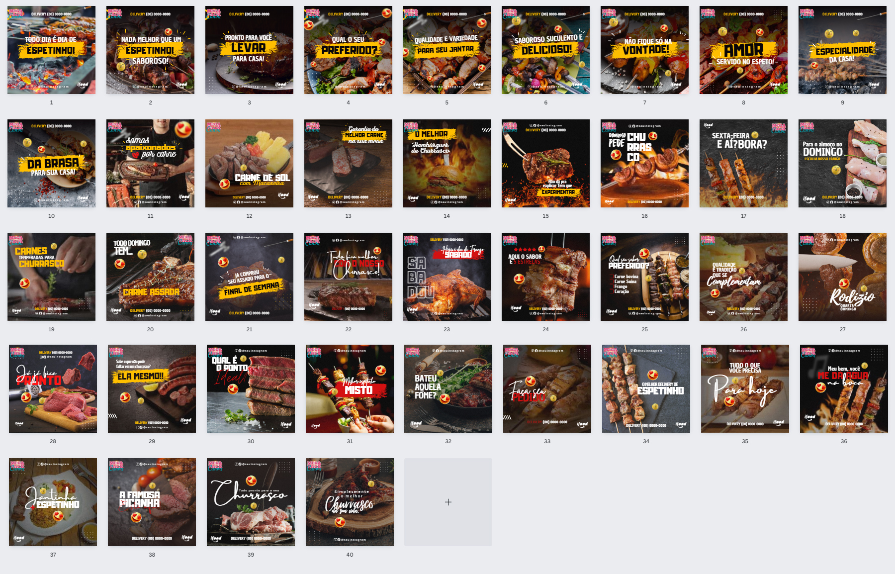 Artes de churrascaria e espeto para Canva modo link direto, abre dentro do Canva