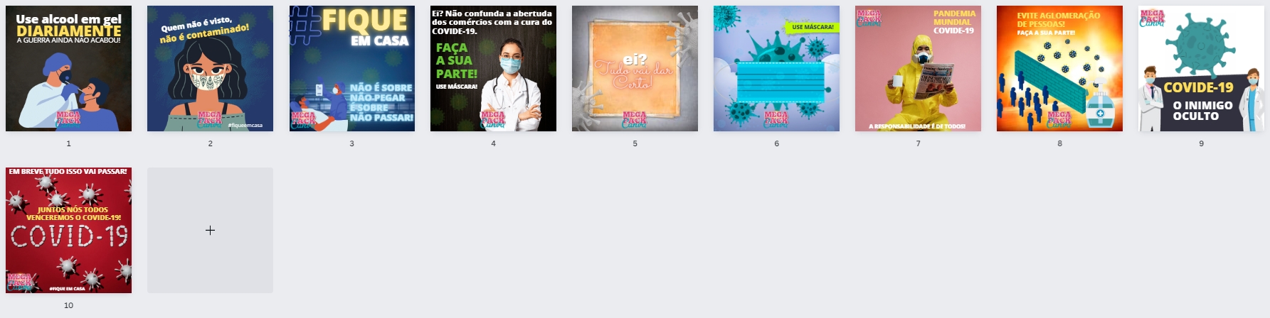 Artes de coronavirus para Canva modo link direto, abre dentro do Canva