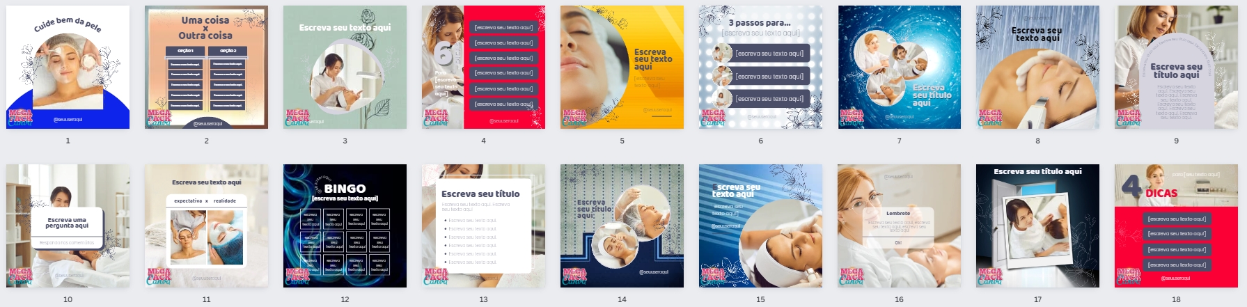 Artes de dermatologia para Canva modo link direto, abre dentro do Canva