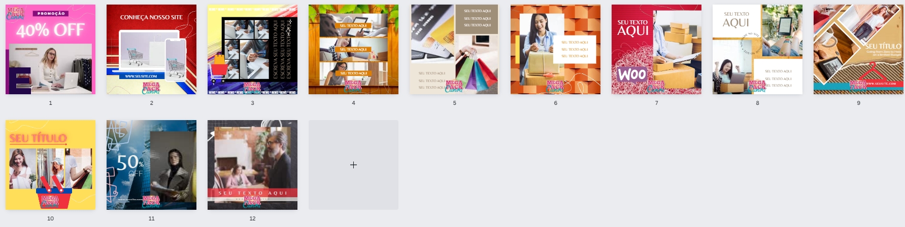 Artes de e-commerce para Canva modo link direto, abre dentro do Canva