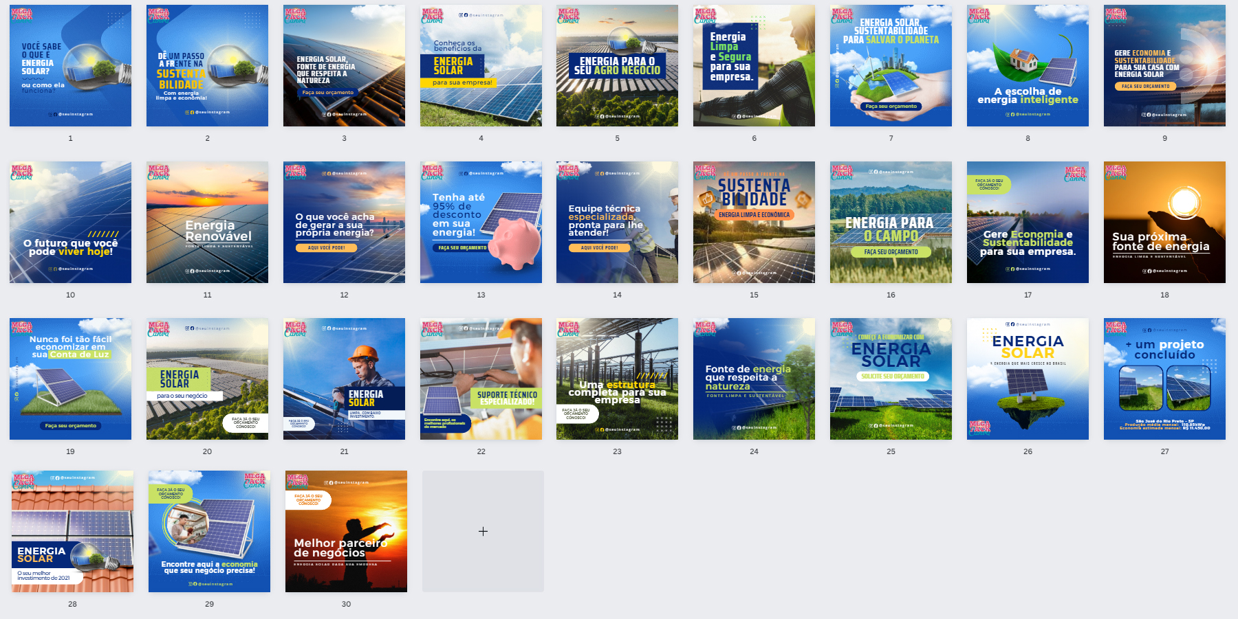 Artes de energia solar para Canva modo link direto, abre dentro do Canva