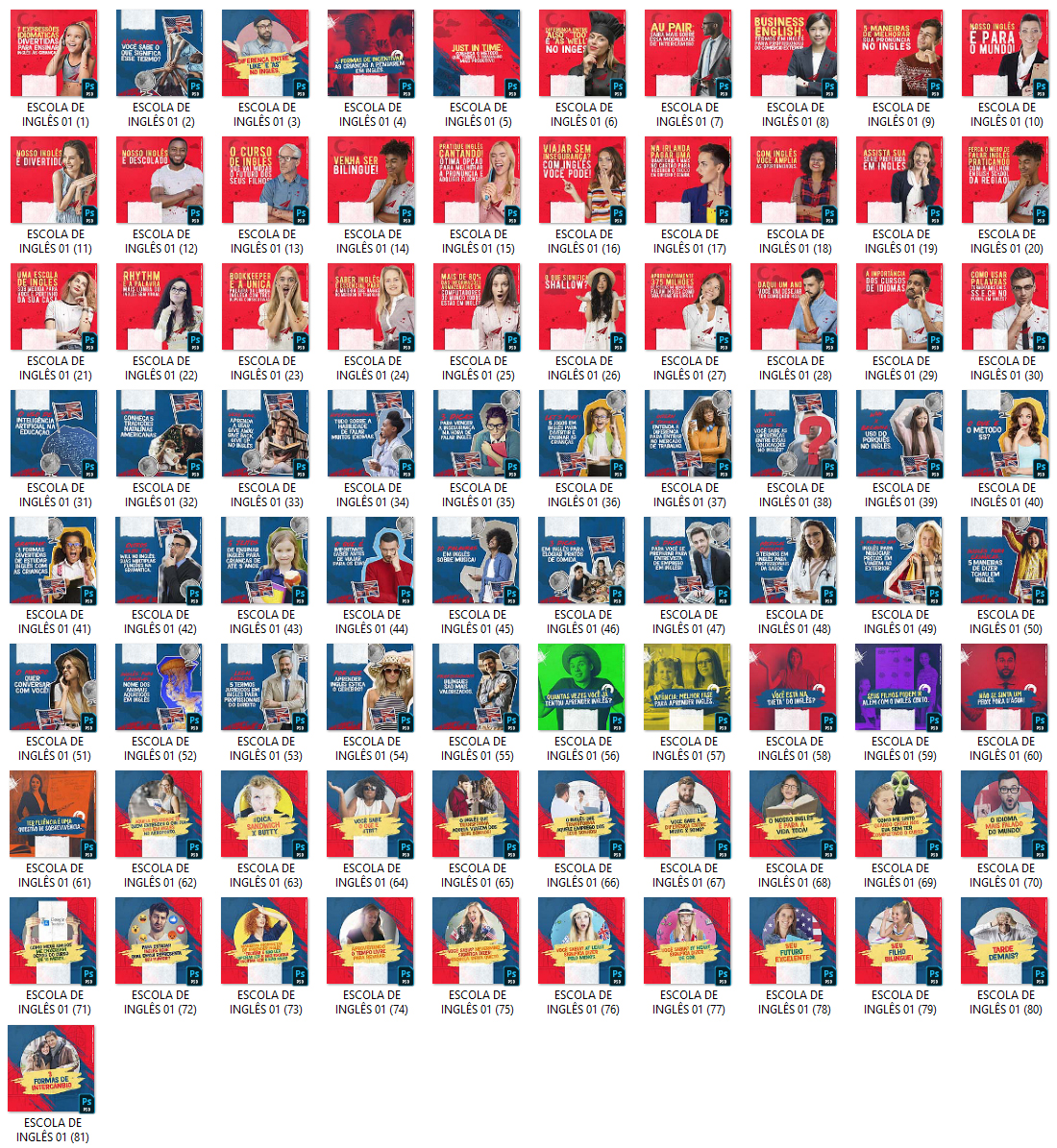 Arts prontas e editáveis para escola de inglês (mas você pode usar para qualquer outro nicho e categoria, basta editar)