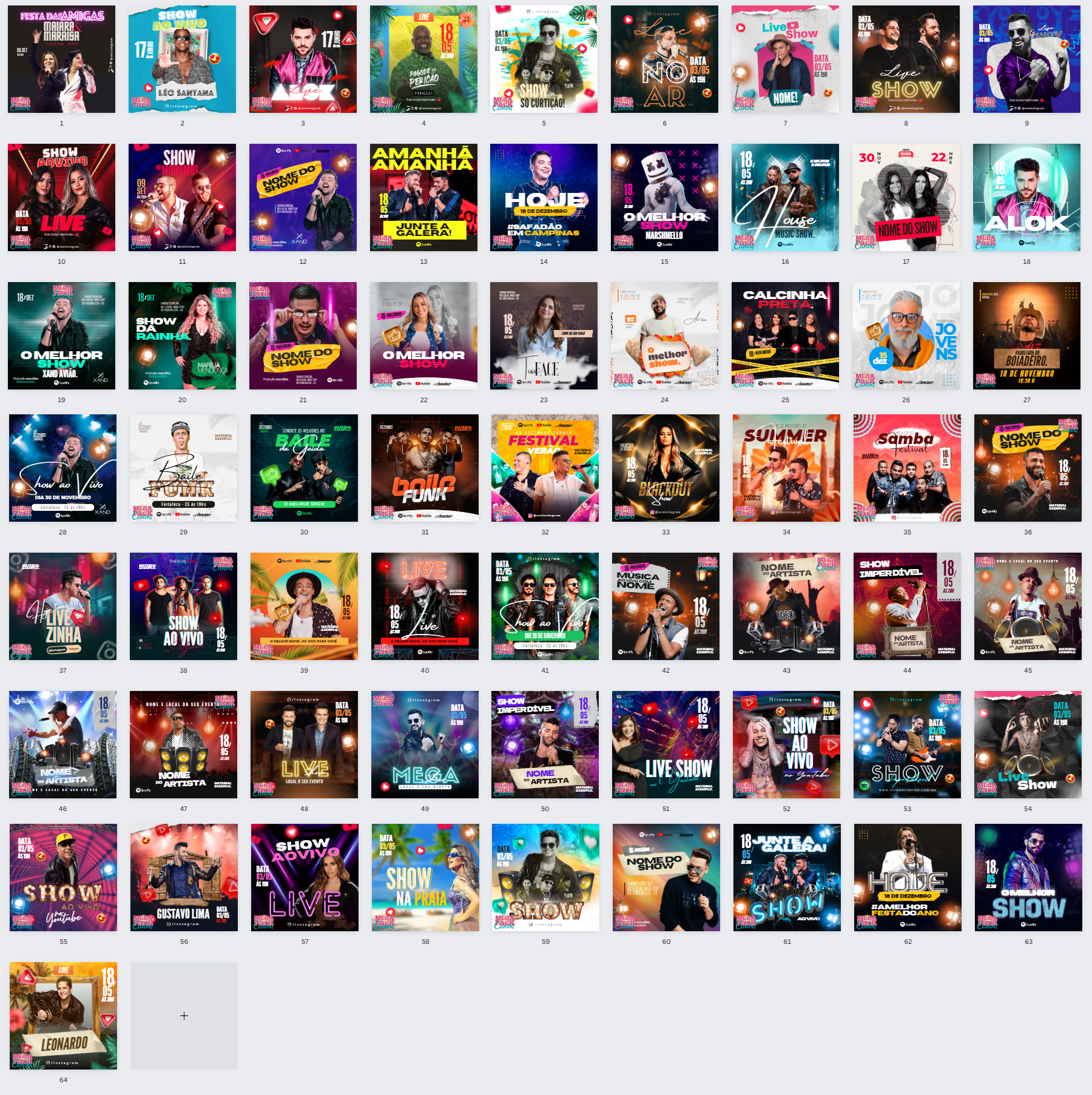 Artes de festas e eventos para Canva modo link direto, abre dentro do Canva