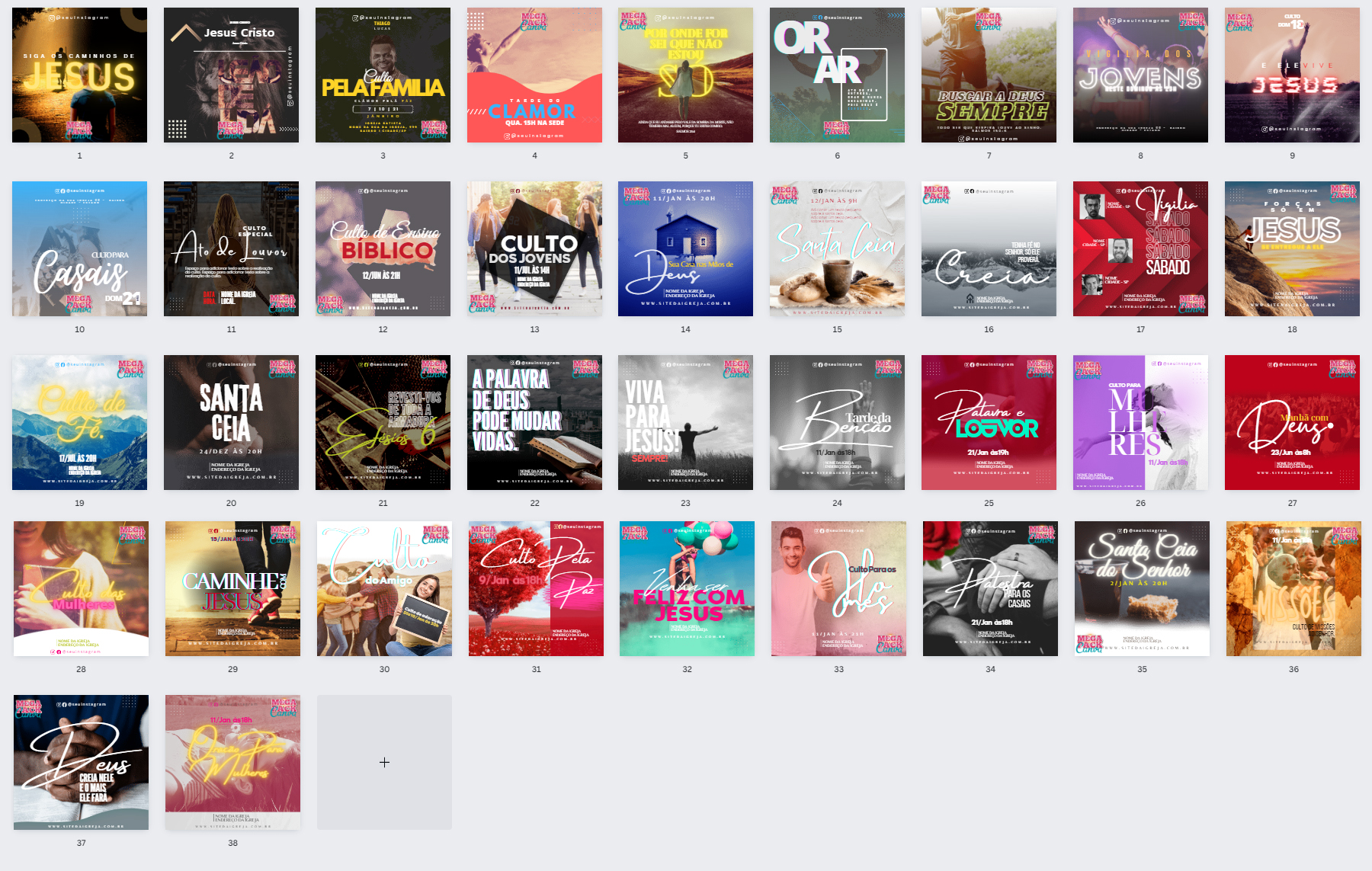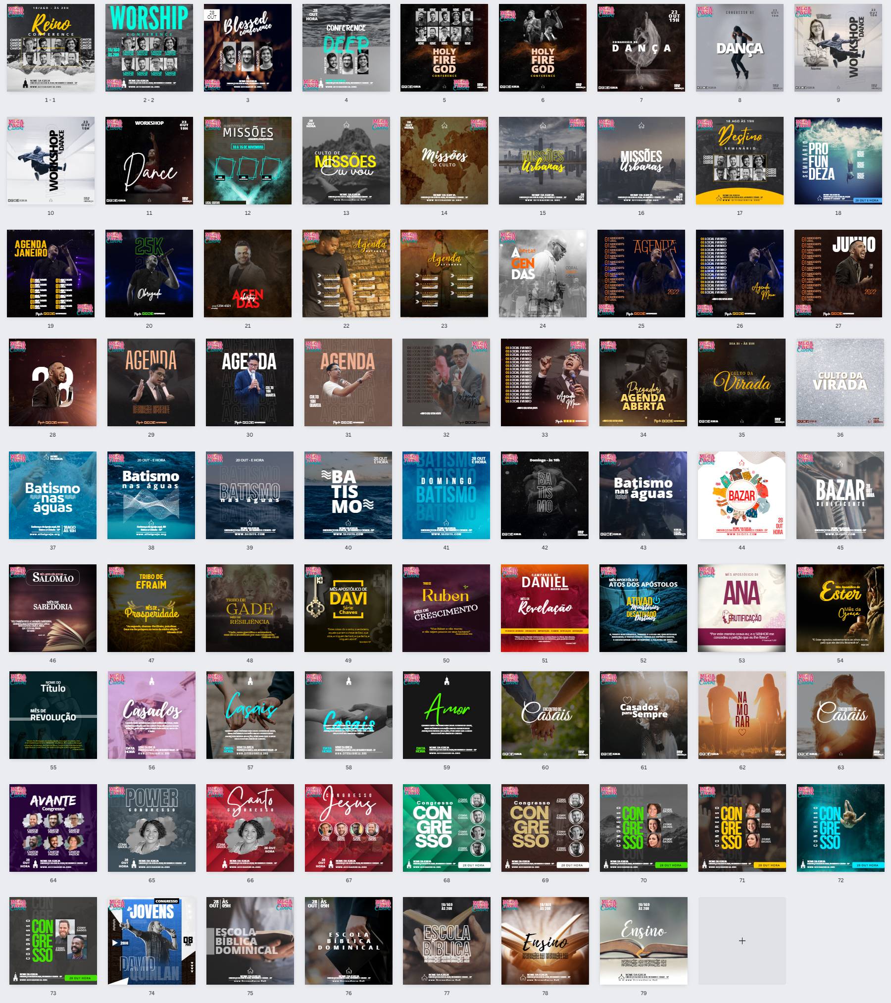 Artes de gospel para Canva modo link direto, abre dentro do Canva