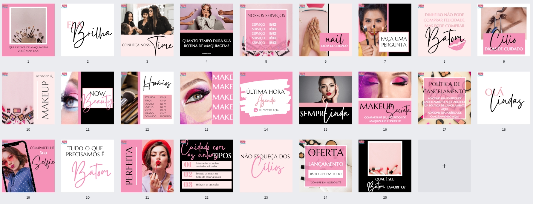 Artes de loja de maquiagem para Canva modo link direto, abre dentro do Canva