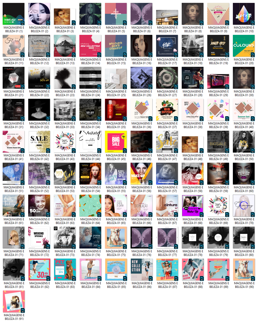 Arts prontas e editáveis para maquiagem e beleza (mas você pode usar para qualquer outro nicho e categoria, basta editar)