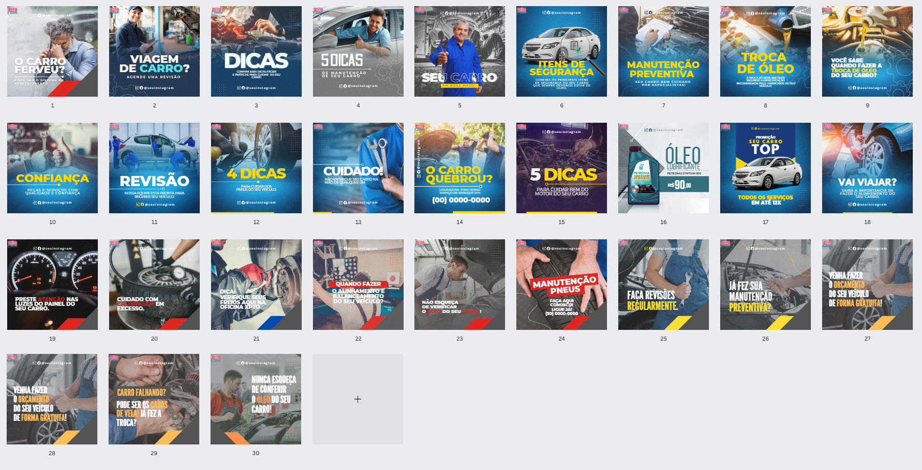 Artes de loja de mecanica para Canva modo link direto, abre dentro do Canva