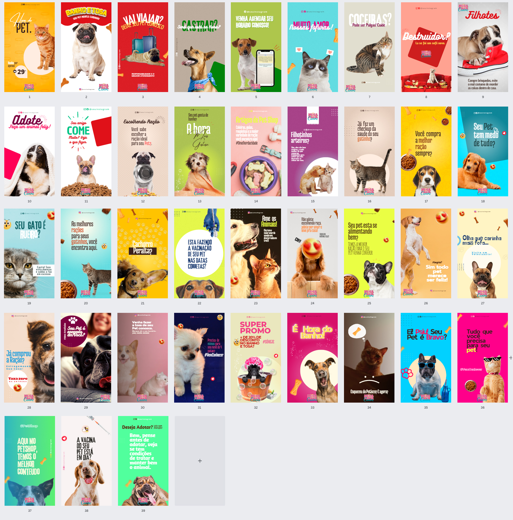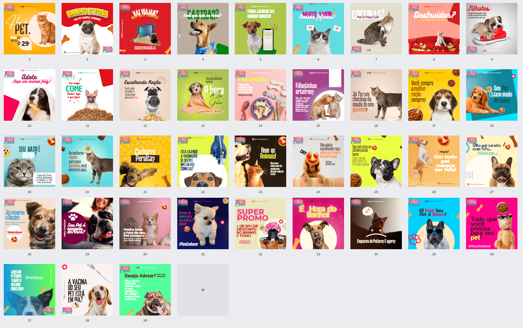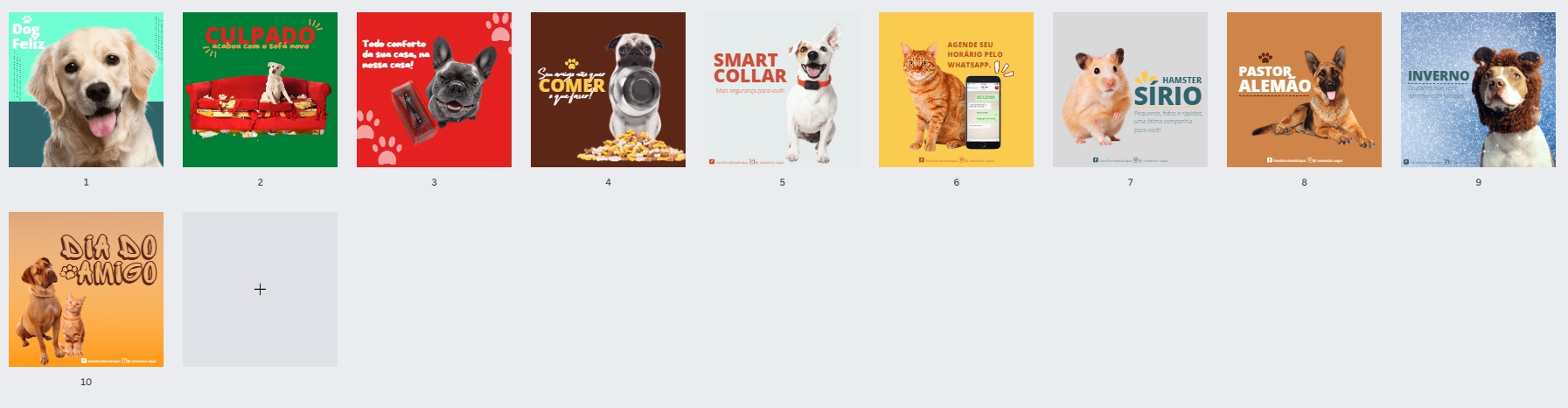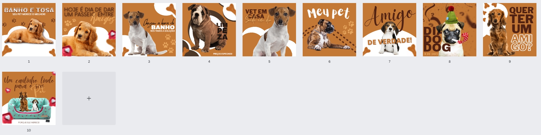 Artes de pet shop para Canva modo link direto, abre dentro do Canva