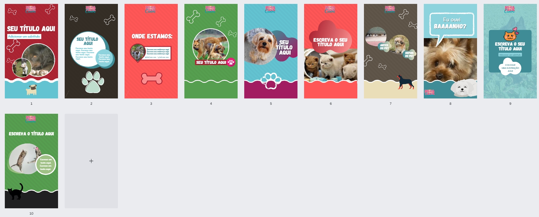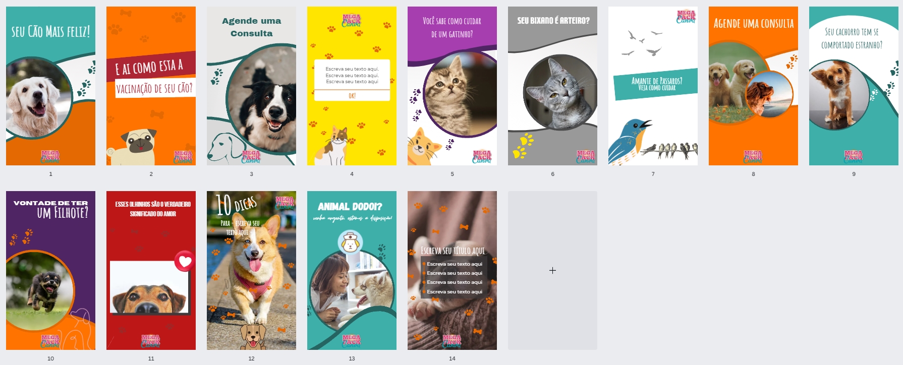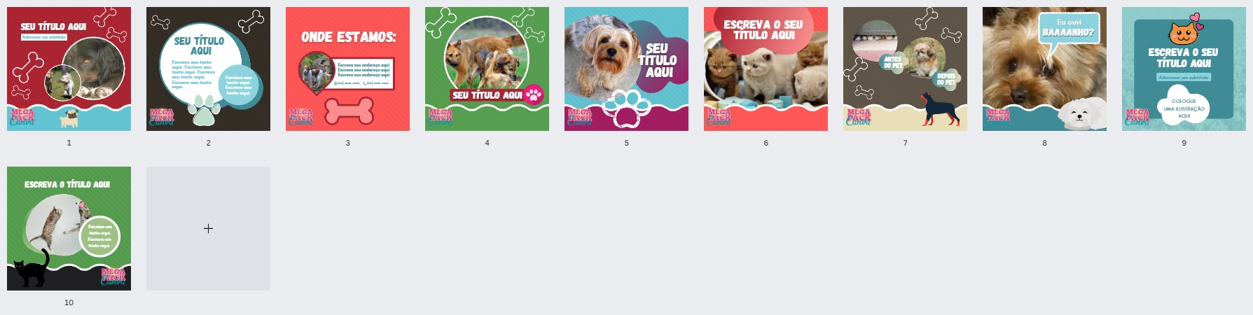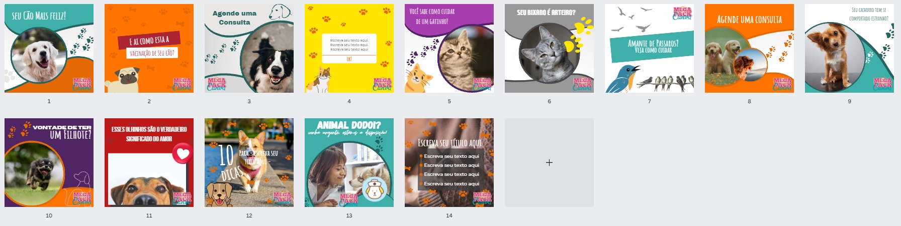 Artes de pet shop para Canva modo link direto, abre dentro do Canva